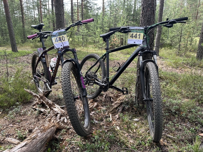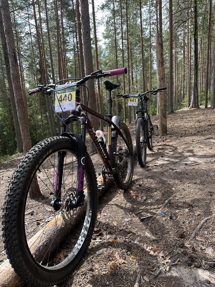 5 этап КВМЛО позади, а именно Лемболовский веломарафон. На старто поехал уже на новом заднем ободе, и из-за этого вновь проходит страх что либо сломать) Был очень рад, когда увидел что стартовый карман дали 3) Это в свою очередь означает, что будет меньше овощей, которые только сели за велик и сразу на марафон😂 Так же, было удивительно что Максиму дали 441 номер, ровно за мной) По силам мы очень близко, ибо на марафонах места были друг за другом. Вот крик старт, начинаем движение, пыли просто столб, Максу удается проскользнуть через поток, и зацепиться за сильную группу, а вот у меня не удалось) Начал обходить народ справа, в надежде догнать его, но решил что лучше сэкономлю силы, ибо спереди огромный подъем. На нем как обычно передо мной кто то упал, и пришлось спешиться🙄 Минут 30 держалась приличная толпа, вечно обгоняющая друг друга, и вот наконец то нашел человека, кто нормально ехал. Много за ним проехал, съел гель, и понимаю что надо бы прибавить. Обхожу его, пристраиваюсь к другим ребятам. Пару раз видел как люди через рули падали) Уже ближе к концу пошла низина, с множеством корней, в которой я не допустил прошлогоднюю ошибку, и сразу зашел с низкой передачи. Далее выход из низины, и очень резкий поворот направо, а слева мостик через речку. Передо мной человек сворачивает на мостик, я ему громко кричу несколько раз, «Мужик, направо!» но он видимо не услышал и туда уехал😂😂 Дальше было очень много корневых секций, на которых много сил и скорости теряется. Так же для следующего года подметил место, в котором лучше проехать по траншее, нежели рядом с ней, что позволит еще времени выиграть. Ближе к концу пошли огромнейшие спуски, убивающие подъемы, на 2х из которых ноги сказали пока, и еле пешком поднялся😂 На некоторых спусках удачно перепрыгнул пару серий корней, что не затормозило) Дальше финиширую, там уже Макс встретил. Сказал между нами разрыв человек 10. Так же финишировал как мне сказали, с черным от пыли лицом😂😂 После захожу на сайт, смотрю место, ну и в целом доволен, что немного да наверх подвинулся) Прошел на 8 минут быстрее того года. 122 место в общем зачете, впервые так высоко.. У макса 112, хоть и не обогнал, зато с удовольствием скатался) Всего полумарафонцев стартовало чуть больше 350. Исправил прошлогодние ошибки, чем не менее доволен.