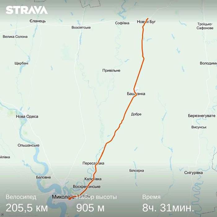 От Баштанки до Николаева около 65км, проехали 35, Тор все ещё продолжал фигачить своим молотом небеса, мы уже немного подмерзли и примерно за 5км до Пересадовки остановились в придорожном магазинчике "Толян". Горячий шоколад и печенюшки зашли на ура, но есть одно но, теперь мы остыли и нам снова стало холодно. В моей аптечке была согревающая мазь Феналгон которой мы и намазали коленные и локтевые суставы, к слову немного переборщив с дозировкой так, что горели эти места огнем, особенно если останавливался и тебя не обдувал ветер. Ехать дальше было веселее, так как дождь поутих, гроза прошла, а суставы пекли : мы пели песни на ходу, а потом я в очередной раз удачно шлепнулся - два раза. На позитиве прикатили на финиш в Николаев, немного уставшие, но счастливые мы разъехались по домам.