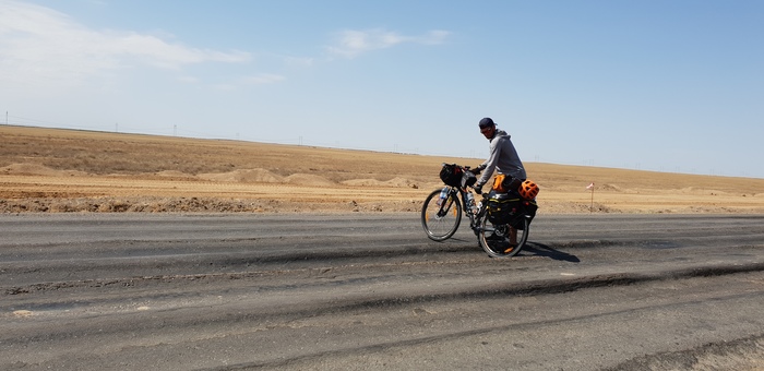 И снова подъем, уже бодрячком срываемся в дорогу, из интересного по пути сегодня мало, больше опасного… например обогнавшая нас фура, «разулась» в километре от нас за бугром, и видимо водила опытный или везучий, на вылет пошло правое переднее колесо, но он удержал фуру и остановился на той самой части где катимся обычно мы… даже думать не хотелось что могло бы быть, поспи мы меньше минут на 5-10, оказались бы как раз с ним рядом… эта ситуация еще больше заставила сосредоточиться на дороге. Но это не все, спустя километров десять, у встречной фуры на наших глазах «разулась» задняя покрышка и со свистом улетела в противоположную обочину, т.е. опять там где едем мы «б%ять, это уже не смешно», но ехать надо…