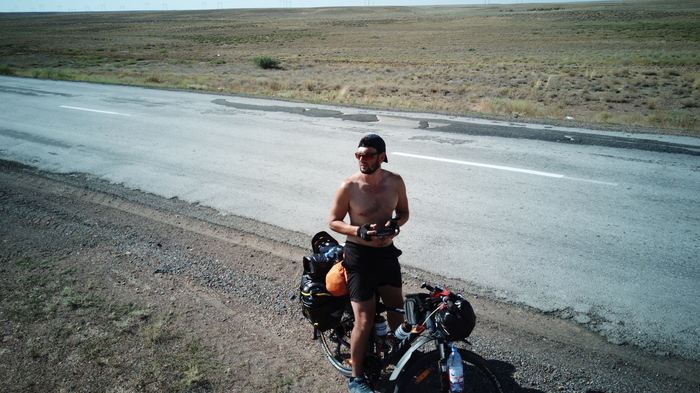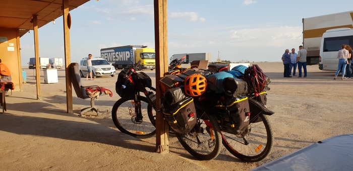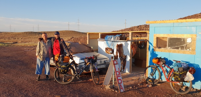 Пока ждали обед, вышел на улицу и попал под уже привычные вопросы «Куда, откуда и т.д.», оказалось что за соседним столом едут земляки, т.е. кокчетавцы (город на сервере Казахстана)! Предложили довезти наши тяжелые вещи до Кокчетава, а потом и вовсе посоветовали все бросить нахер и ехать на поезде, реально сочувствовали), до Кокчетава в том момент было еще около 1100 км… но мы не сдаемся, обмениваемся пожеланиями доброго пути и прощаемся.