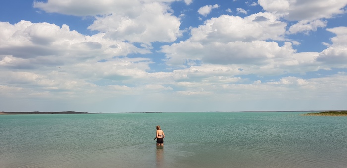 Вот что значит попутный ветер, уже спустя три часа, преодолели примерно 50 км. и заслужили тем самым обед в попутном кафе около станции Кашкан-Тенгиз. Замечаем что от кафе до озера всего километра два, значит после обеда порадуем себя еще и водными процедурами, шииикарно)