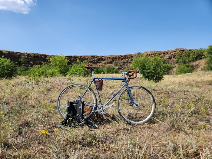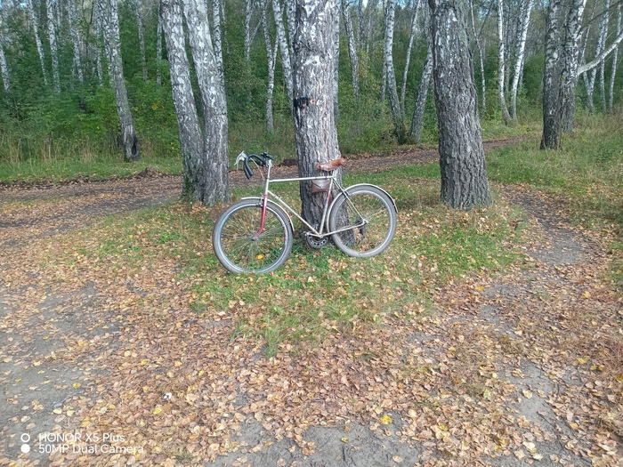 Люблю старое железо и всякие велонеобычности. Это "Старт-шоссе" 1974 г.в., собранный как эндюренс или гревел, или -- говоря проще -- вседорожный велосипед для прохватов по укатанным грунтовкам, бетонкам и несвежему асфальту с некоторой претензией на спорт.