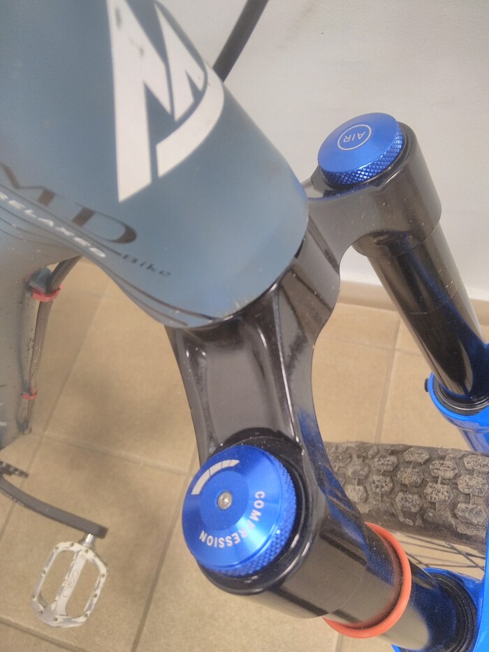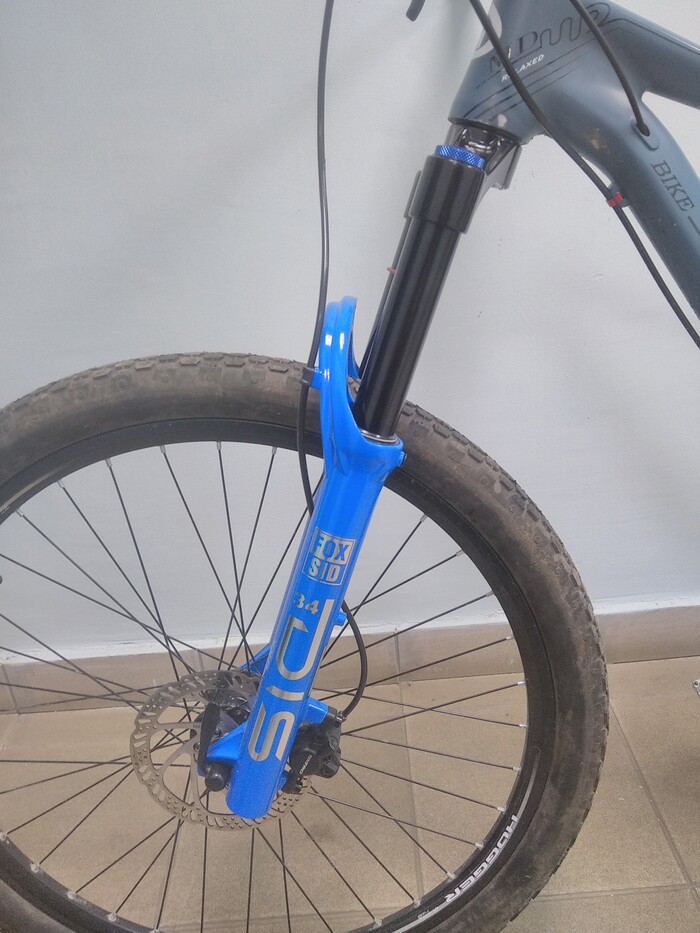 В общем, положил внутрь штанов свежей смазки, собрал обратно. Отложил вилку в сторону и стал дальше искать информацию. Есть не мало видео по разборке китайцев разными веломастерами. По результатам поисков и общения с мастерами. Было принято решение на приобретение вилки Foxsid м34. 140мм хода. На выбор были ещё Nanlio и Bolany. По уверению мастера они по потрохам не отличаются вообще. А выбранный Foxsid красивого синего цвета )))