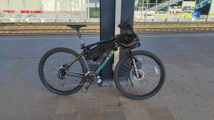 И вот, только я раскритиковал ТЦ "Тверь", как мгновенная карма настигла меня. Передо мной проехала поливальная машина и я, объезжая припаркованный автомобиль, поскользнулся колёсами на мокрой полосе и упал со своим тяжёлым гружёным велосипедом прямо на проезжей части. Первое падение в этом году. Повезло, что не сильно ушибся и не задел автомобили. На заметку всем велосипедистам - будьте предельно осторожны с влажным покрытием, не едьте по полосе разметки. Когда разметка мокрая - она скользкая. Очень опасно. Даже по сухой старайтесь не ехать. На шоссе эта ошибка может стоить жизни.