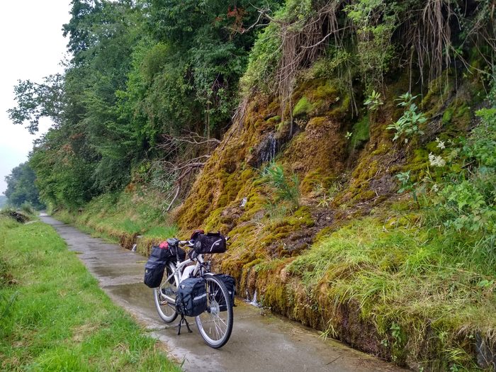 Виды шикарные, но не в тот момент, когда у тебя промокшая одежда и обувь, а сам ты тянешь тяжелый велосипед по мокрому мосту.