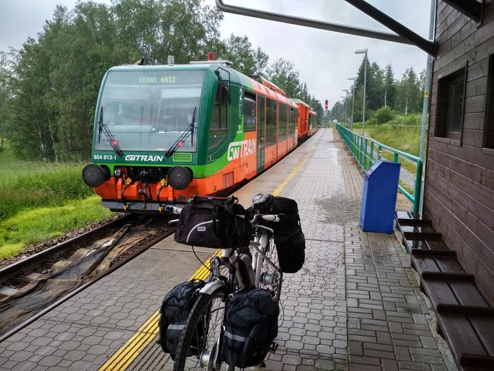 Кратчайший маршрут от Праги до Зальцбурга на велосипеде составляет почти 400 км, из них 200 - это Чехия. При этом надо понимать, что рельеф в Чехии в основном холмистый, множество велотуристов отмечают, что Чехия в плане поездок весьма выматывает уже на первых 50 км. Поэтому было решено сократить путь и доехать до границы на поезде.