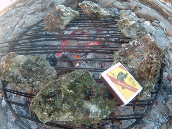 устрицы добытые из канала . нашел пастбища устриц, которых тоже запекали на гриле, ну и так сырыми с лимоном и вином.