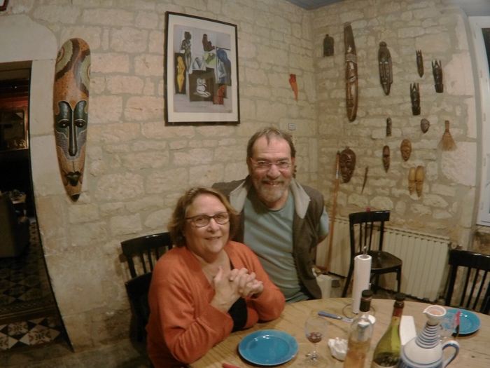 Еще за 40км до начала города Ажен, меня встретил велосипедист спортсмен и сопроводил меня до своего дома. Ему около 70 лет, бывший чемпион по марафонскому бегу. Полтора часа мы играли в настольный теннис, а потом он уговорил меня поиграть в шахматы и был удивлен проиграв три раза. Я хоть и играю редко, но навыки кандидата в мастера еще остались). Пришла его жена, которая работает со спортсменами инвалидами. Она начала вкусно кормить и потом конечно дегустация сыров и вина.