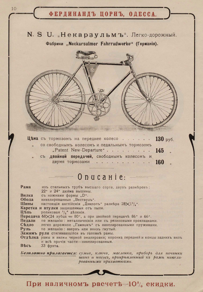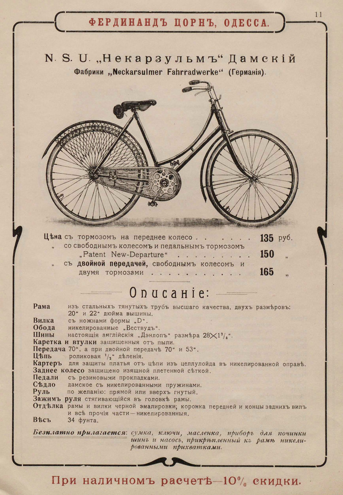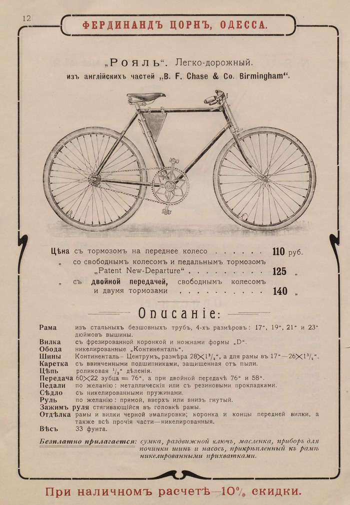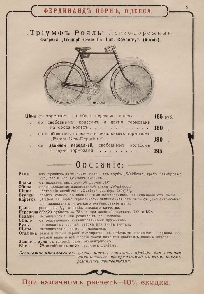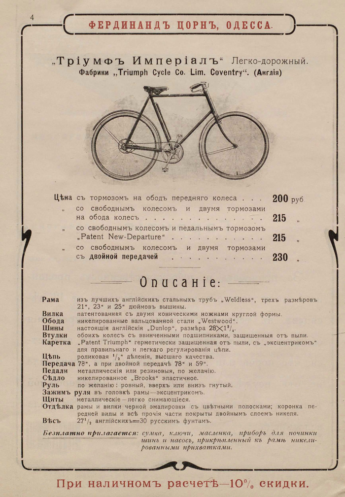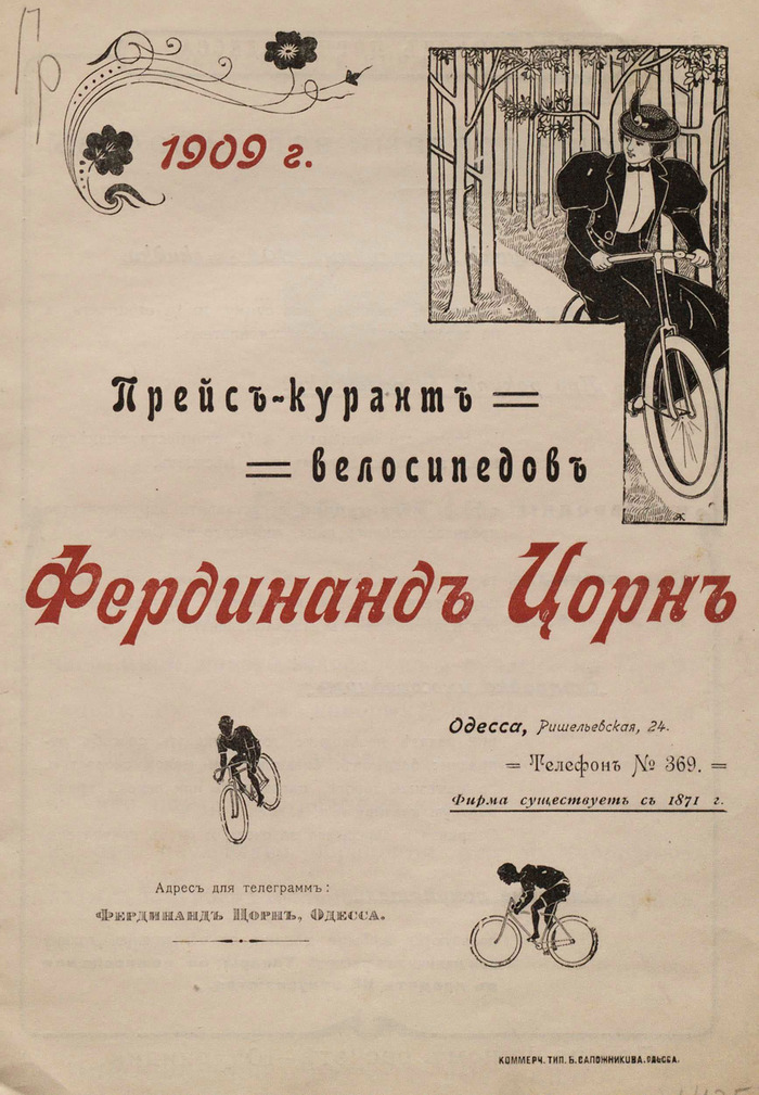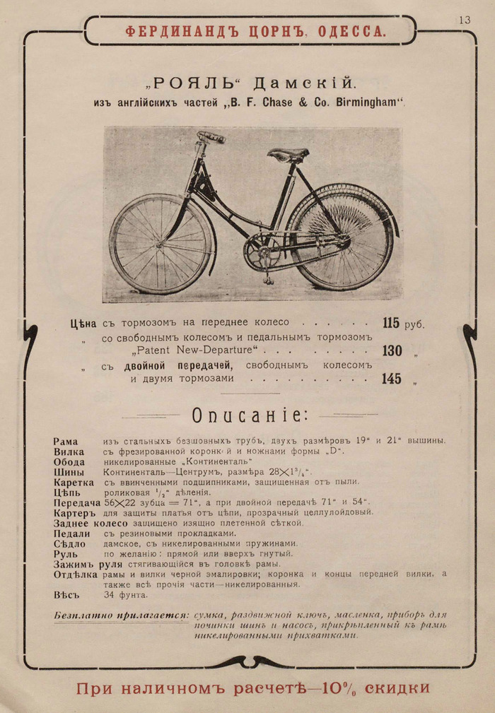Прейскурант велосипедов Фердинанд Цорн 1909 год