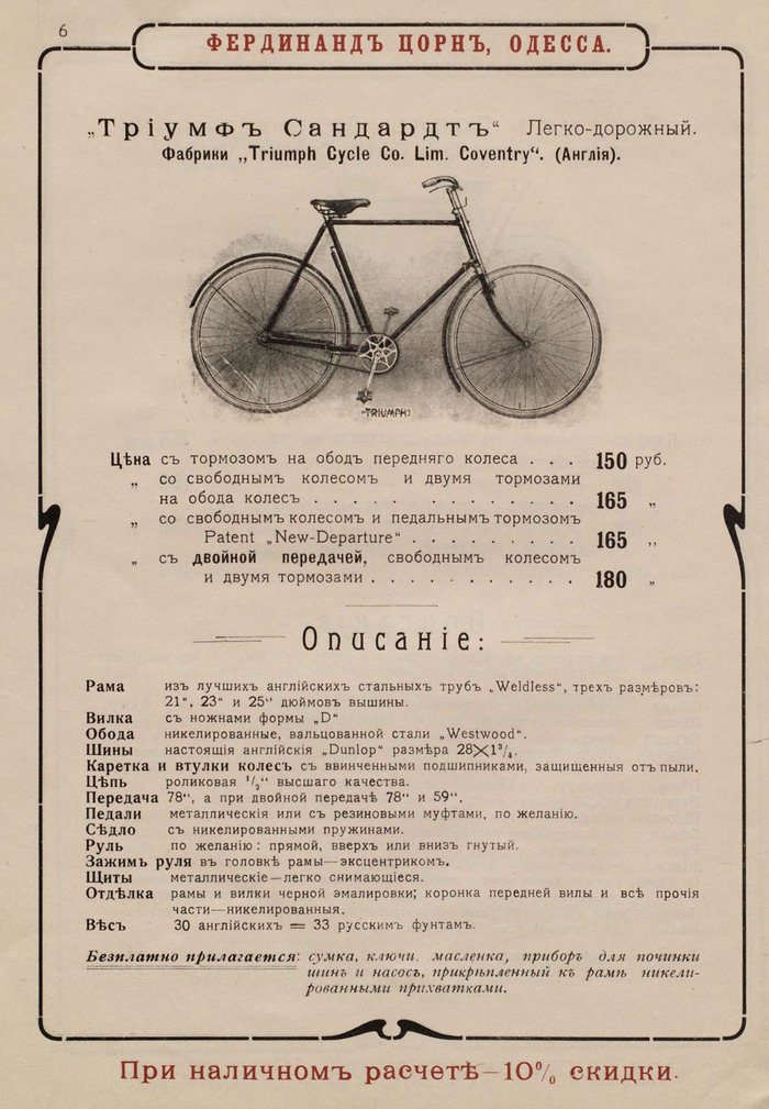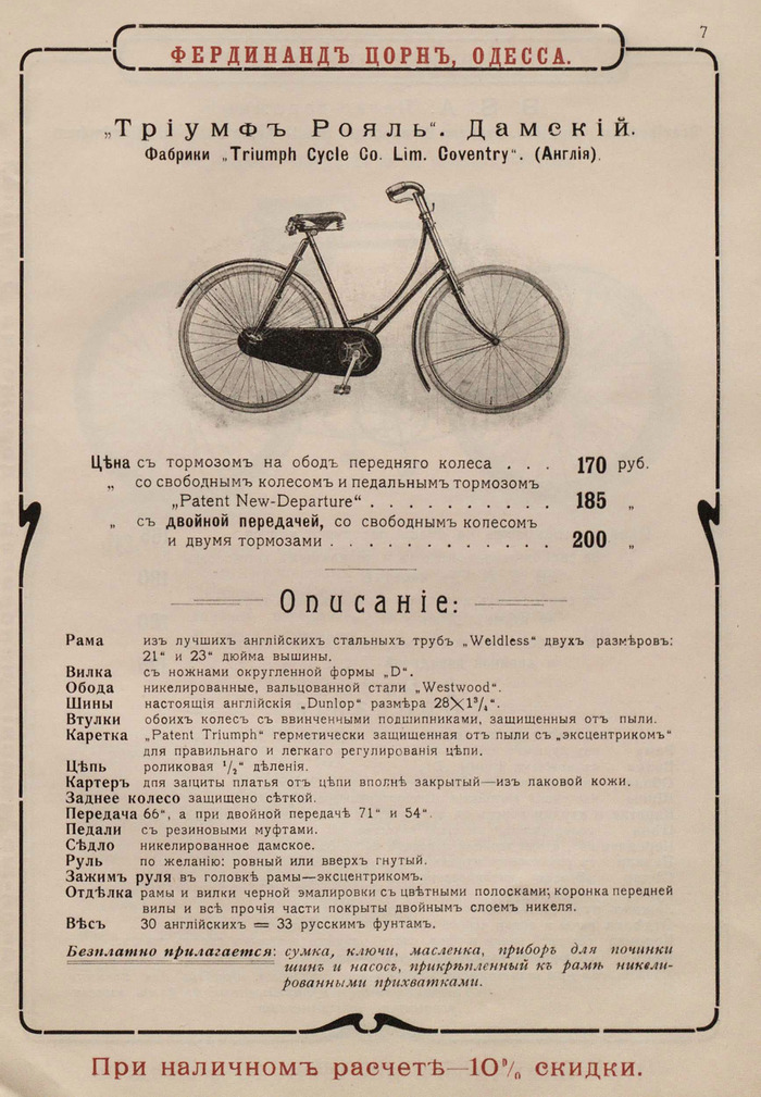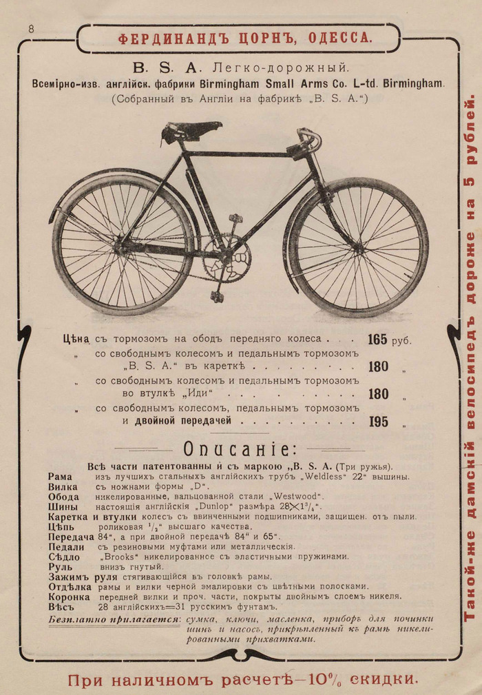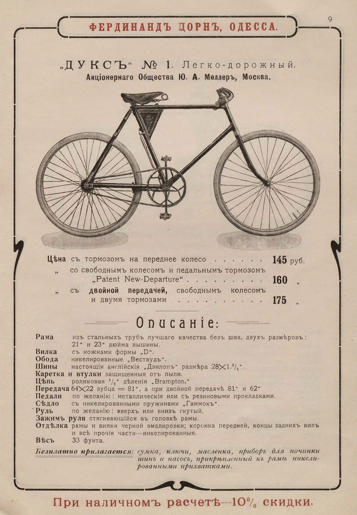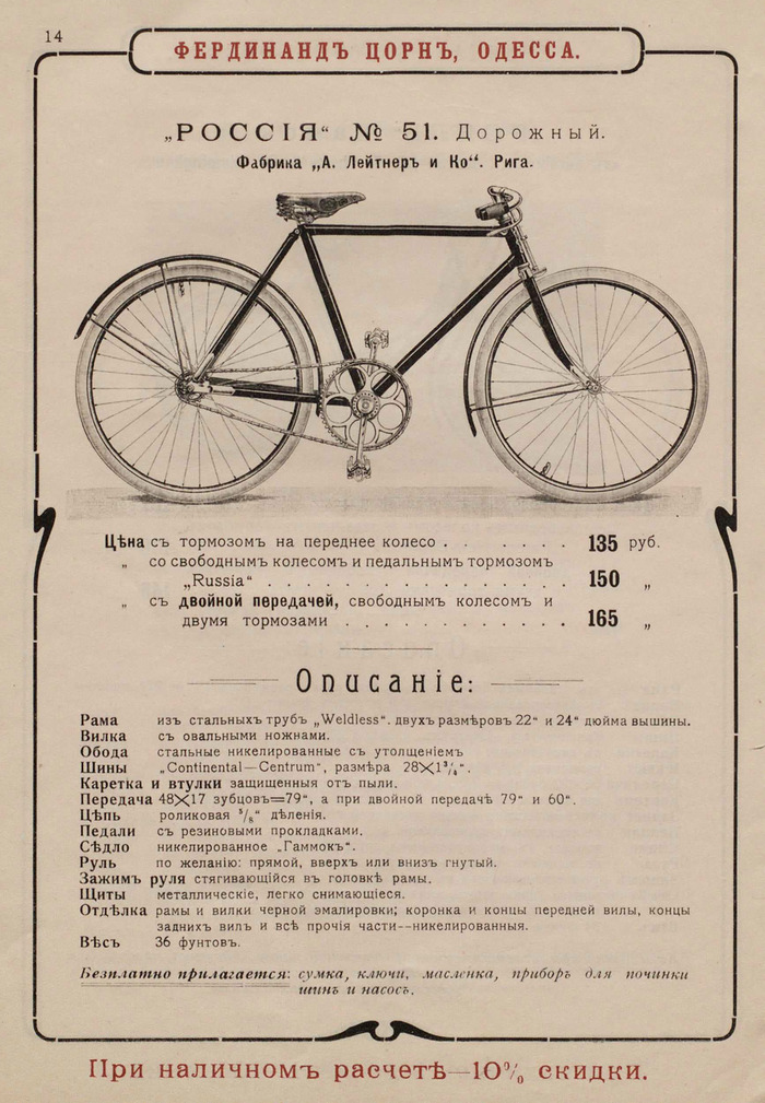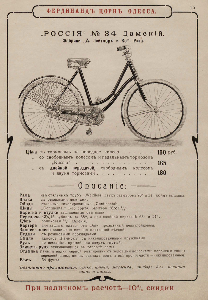 Прейскурант велосипедов Фердинанд Цорн 1909 год