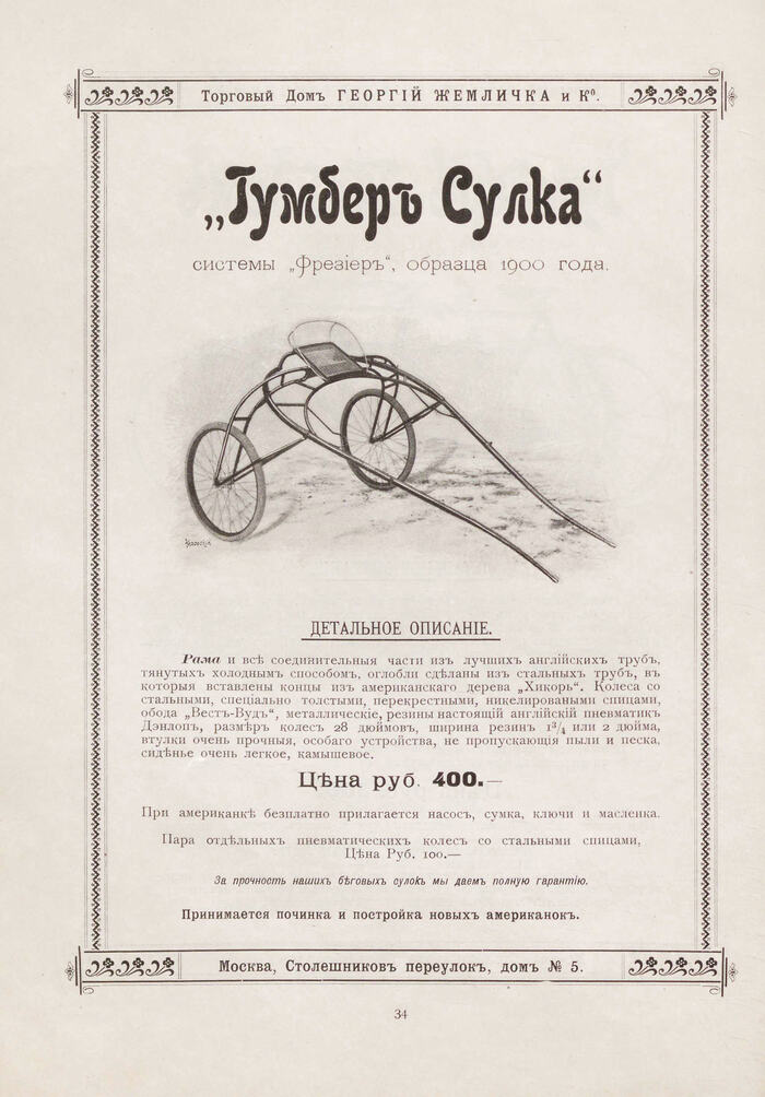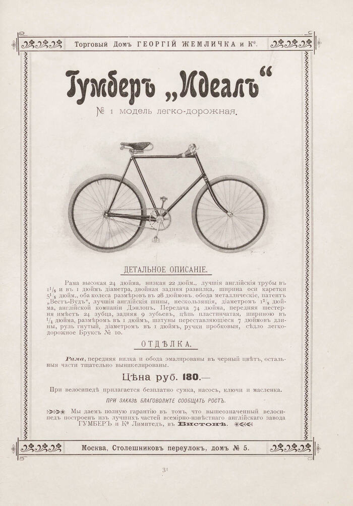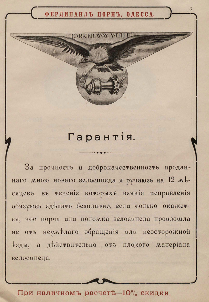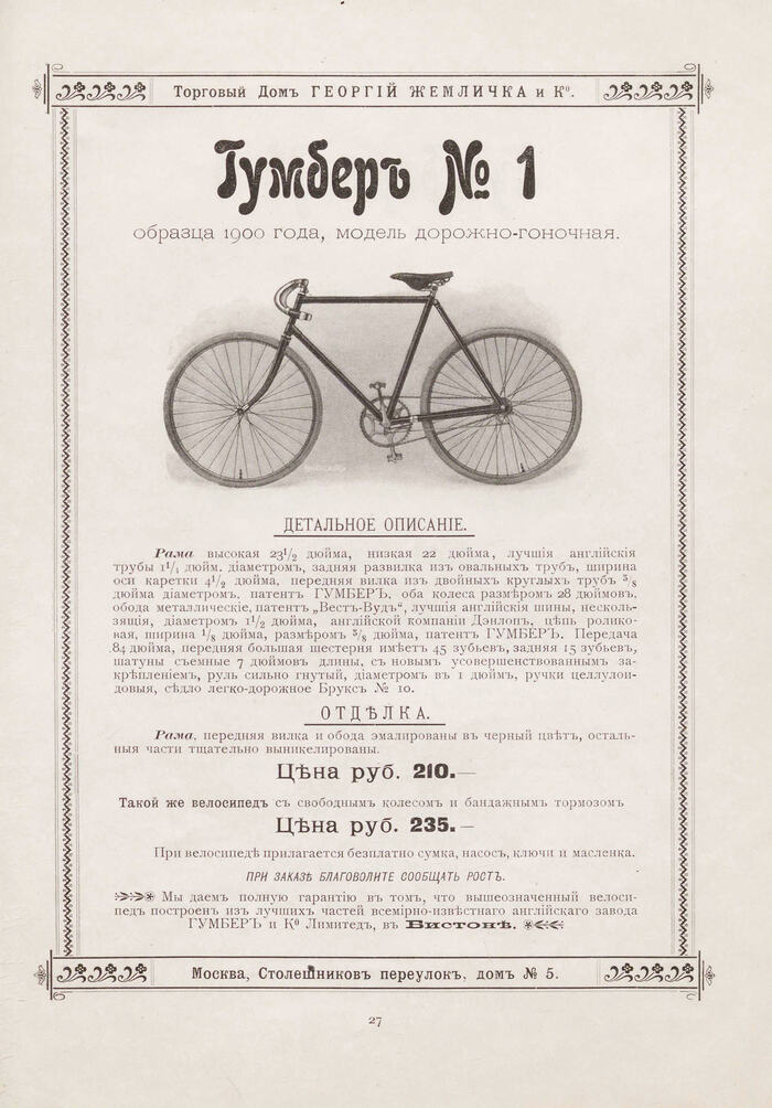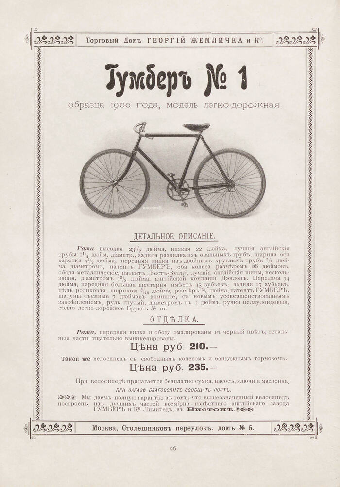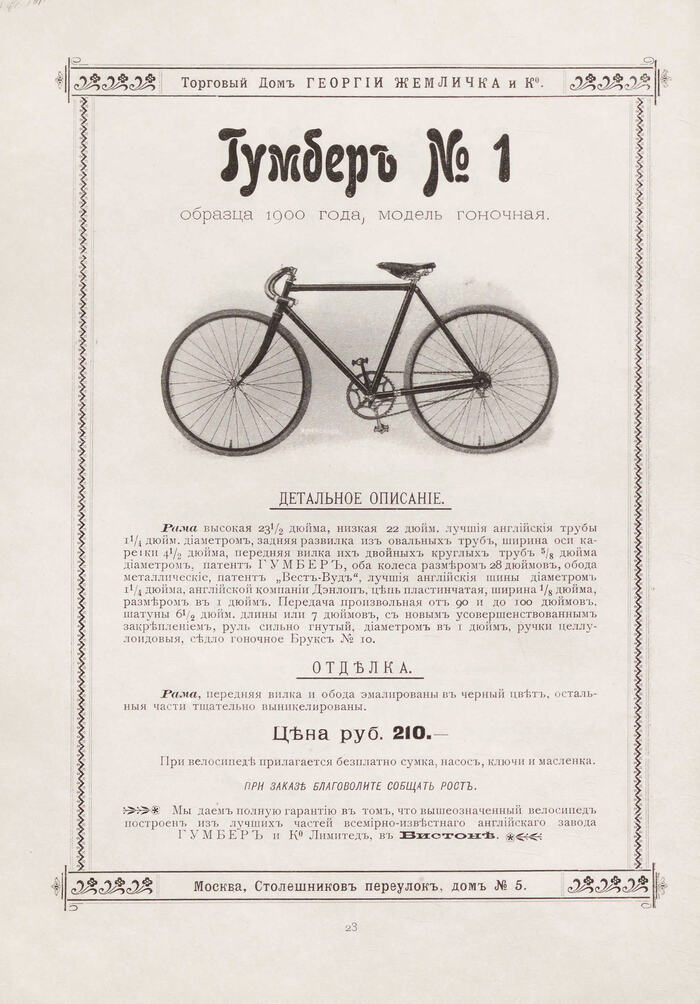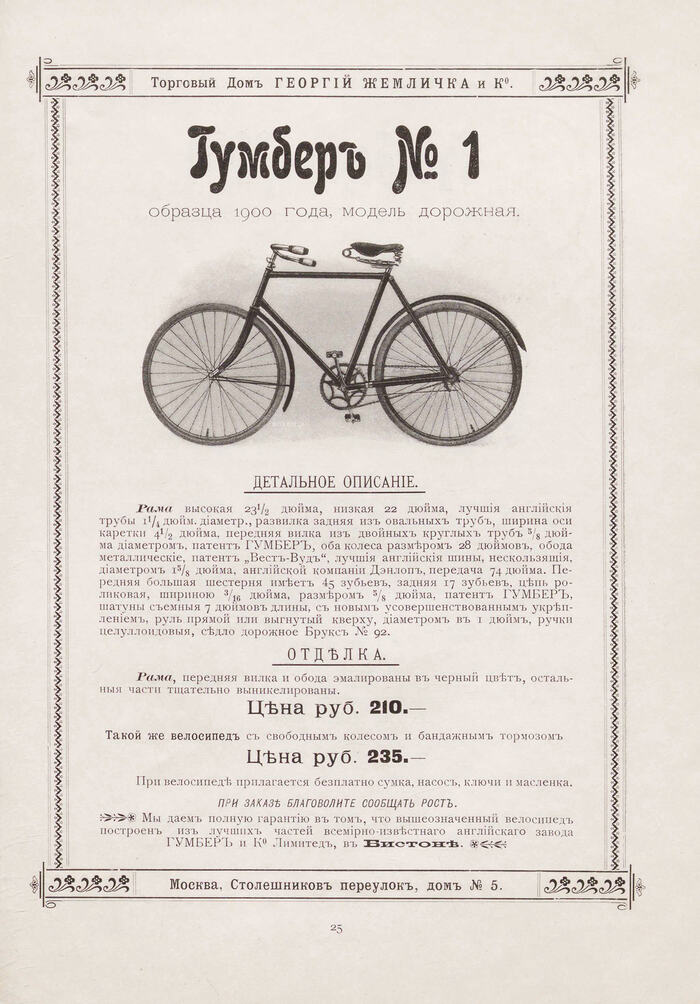 Прейскурант велосипедов Фердинанд Цорн 1909 год