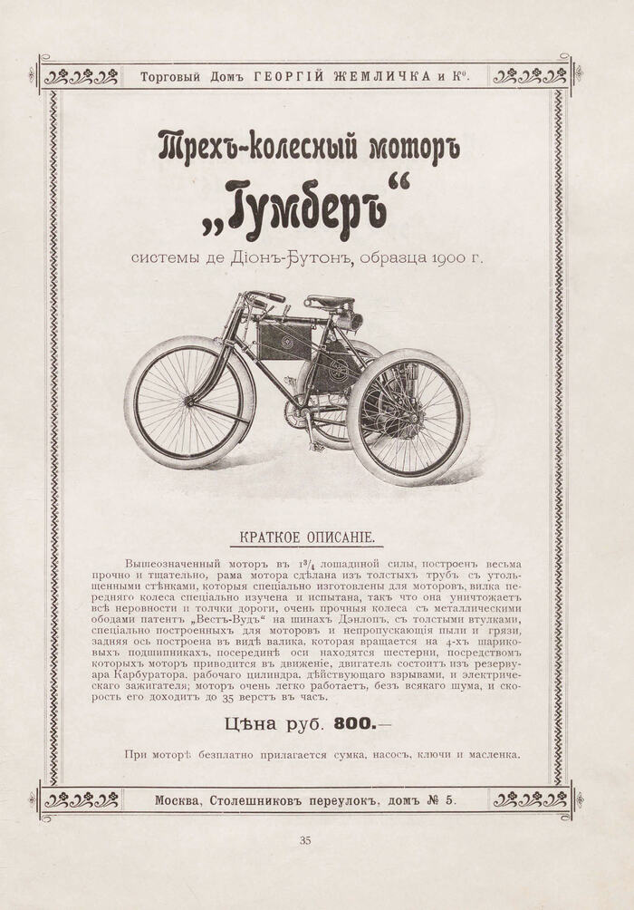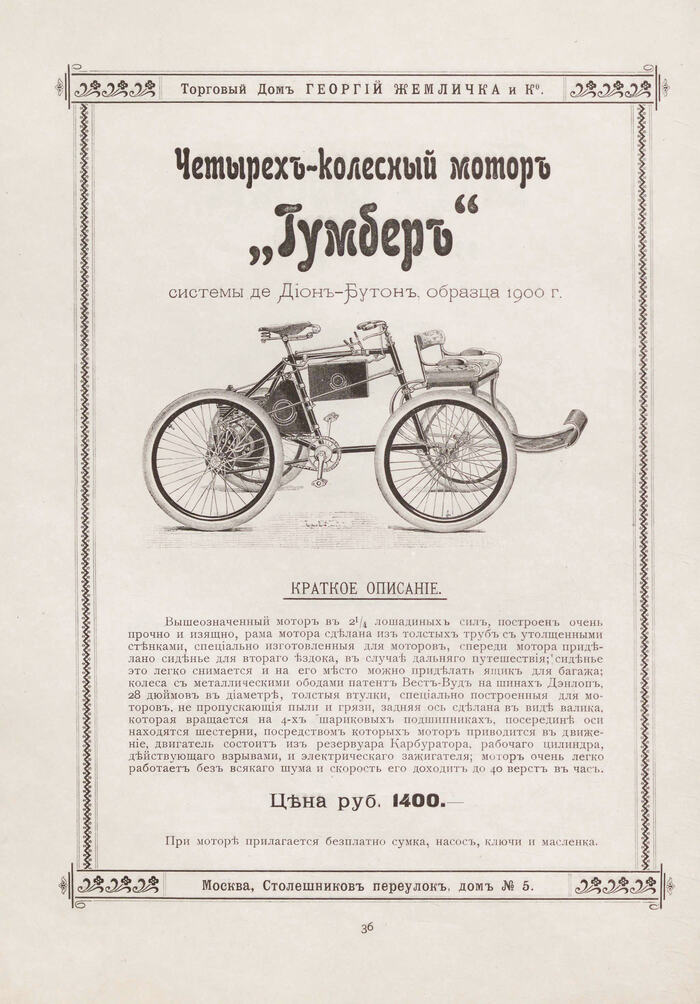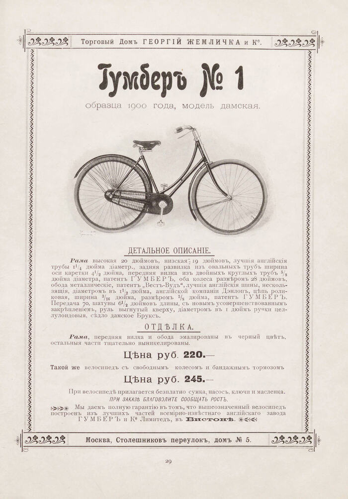 Прейскурант велосипедных принадлежностей и составных частей 1905 года