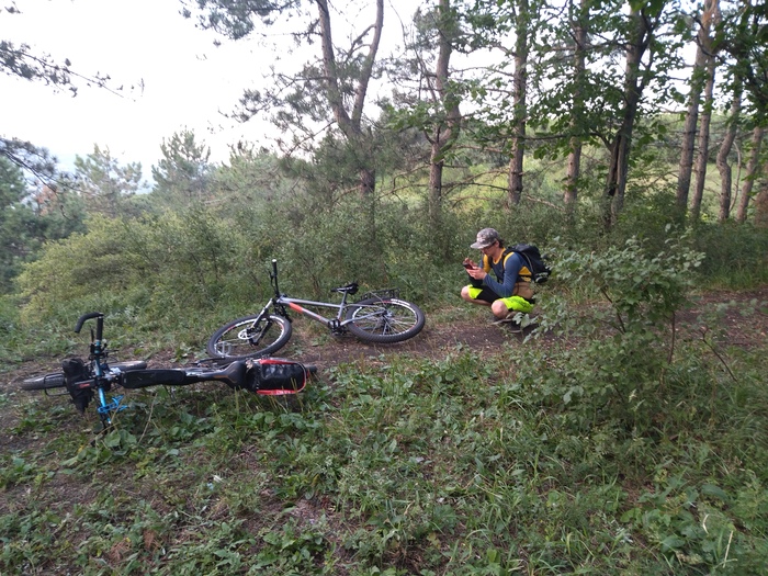 Дороги там практически нет, ибо перекрыто с другой стороны и там никто кроме нас и по всей видимости ещё двух таких же отчаянных велосипедистов (заметили следы на земле) не проезжал. Пробирались по заросшей от времени но ещё виднеющейся тропинке, которая как-то быстро кончилась и пошла прям целина, в сторону Армянского леса.