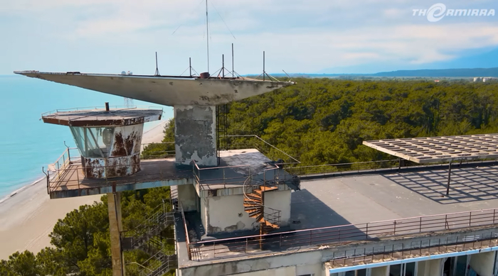 Одно из таких мест находится буквально в сотне метров от пляжа. Еще в 60-е годы прошлого века санаторий "Грузия" исправно принимал гостей со всего Советского Союза. Это был огромный, ухоженный комплекс, который изображали на картинах и гравюрах того времени.