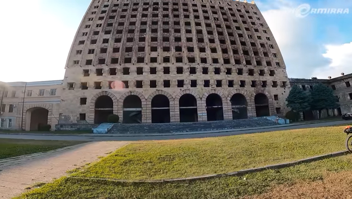 Постройка, которую вы видите на фотографии, когда-то выполняла функцию здания Правительства в Сухуми. Можно сказать, что находится она в самом центре города.