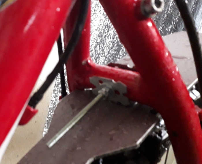 Сзади в раме есть отверстия под болт М5, что упрощает задачу