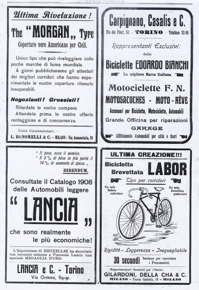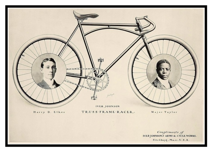 На плакате Лотрека, посвященном велосипедным цепям, изготовленным компанией Simpson company, изображена сцена гонки с участием команд гонщиков на трёх, четырех и пятиместных велосипедах, а также, по крайней мере, одного гонщика, едущего в одиночку; возможно, подразумевается, что цепь Simpson дает одному человеку преимущество над многими. "L.B. Spoke" - так назывался магазин велосипедов, которым управляет представитель Simpson во Франции Луи Бугле.