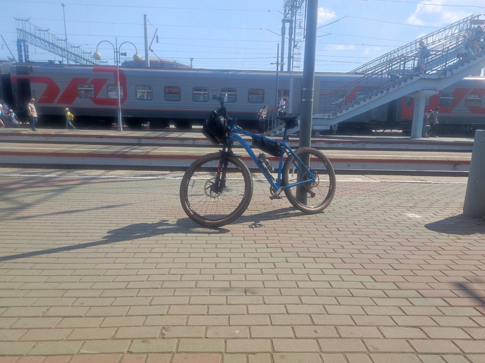 Чуть не упустил свою электричку — я ожидал старую советскую, а тут современная, как ласточка. Закидываю с низкой платформы сначала сумки, потом велик.
