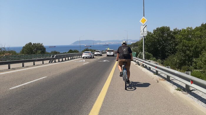Сегодня у нас вело день, пешком по Сириусу не находишься. Едем по набережной в сторону порта. Через весь берег до порта, проложена велодорожка. Вообще классно, ни кто ни кому не мешает.