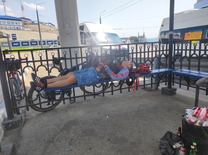 Отдохнули переночевали покупались в море. Двинули обратно. Жара не жалела совсем, но выбора нет надо успевать на электрон.