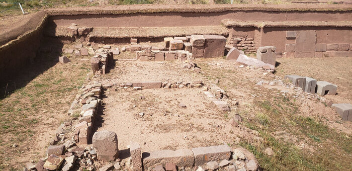 Сооружения, раскопанные исследователями в Тиуанако, включают террасную платформу-курган Акапана , Восточную Акапану и ступенчатые платформы Пумапунку , ограды Каласасайя , Кантаталлита, Кхери-Кала и Путуни, а также полуподземный храм.