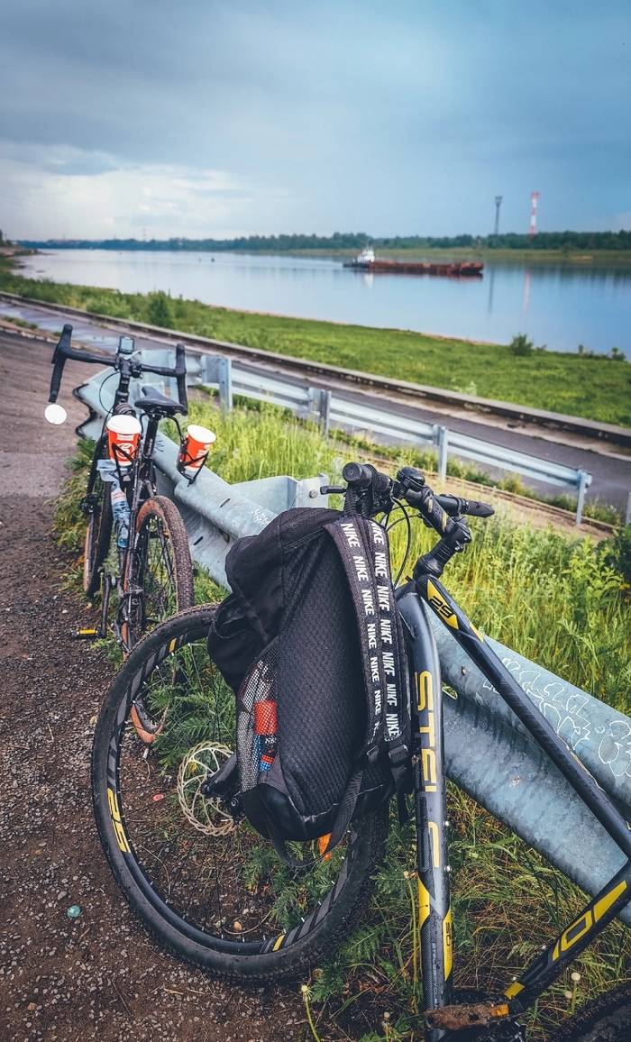 И вот, вижу вдалеке, что-то похожее на мост. Но какой-то он подозрительно маленький. Делаю на телефоне увеличение x8, и вижу, что это что-то типо газовой трубы с приваренной к нему площадкой, наверное для пешеходов. С груженным великом, и по мокрому там не пройти. Ну что ж, таков путь самого обычного русского джедая - левитацию в российских филиалах академии джедаев я не проходил.