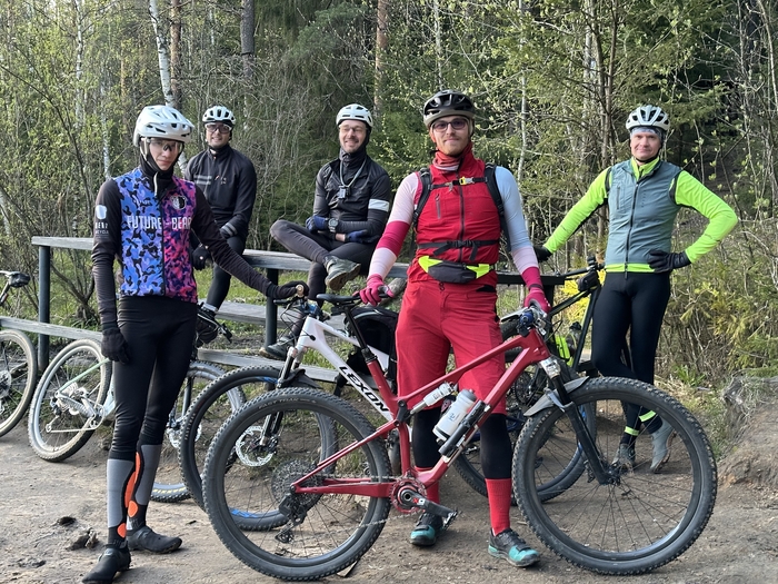 Темп заявлял по грунтам 20-25, асфальт 25-30. Согласился поехать даже Димас Добрынин, но в лайтовом темпе, потому что ехал на старт интервальной тренировкой против ветра, и вымотался. Ну и на старте, до корней начали с ходу топить под 30км/ч, что не всем понравилось😁 (почему я так ехал? Потому что сзади кто то в колесо дышал, и я подумал что хотят быстрее😂). Корневая секция, прямо вау! На подвесе сидя проехал, кайфанул от души! На скорости 30 глотает просто все корни! Далее асфальт, на котором отстали трое, потому что у Димаса шип открутился. Подождав, поехали до Всеволожска. Далее лес до барханов, ехали 25, начали над Димой угорать, что медленно тошним, и он решил втопить 40км/ч, Юра и я охотно присоединились, и это было весело😂.