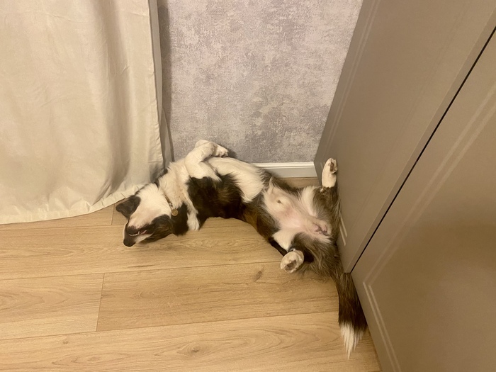 Спать любит на спине, для этого ложится вдоль стен. Зимой не мёрзнет - обожает купаться в снегу и кататься с дочкой на ватрушке, а летом кстати залезает и скатывается с ней с горки на детской площадке. Летом ему очень жарко - оставляем в одной комнате кондиционер, специально для Макса.