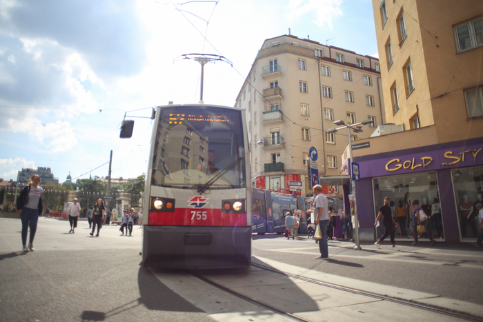 Буквально за поворотом открывается новый вид. Венские трамваи. Их, кстати, много в городе.