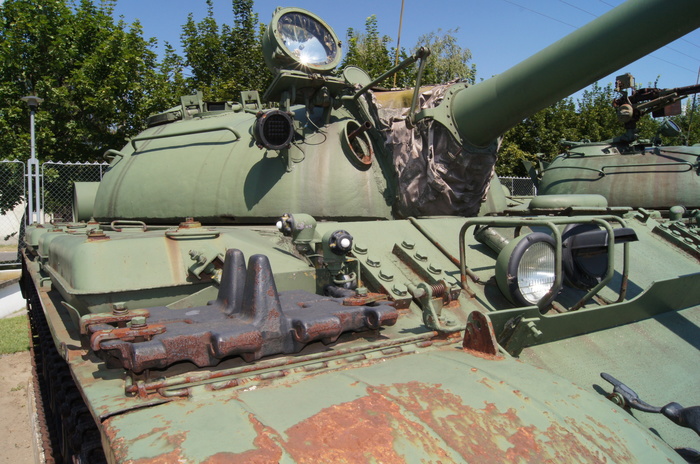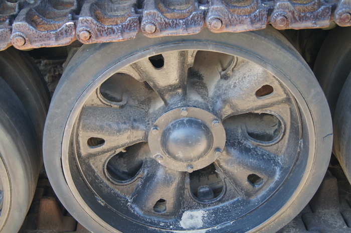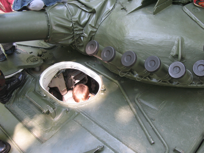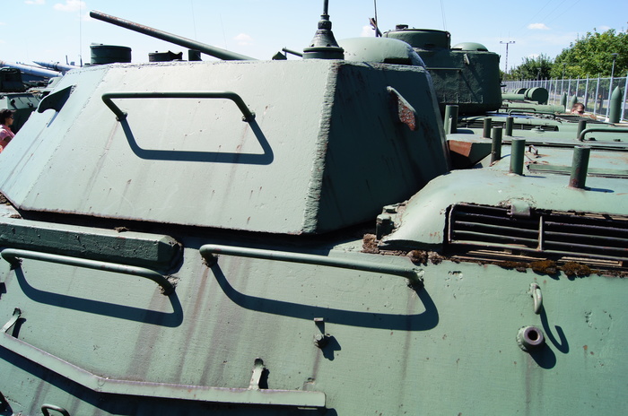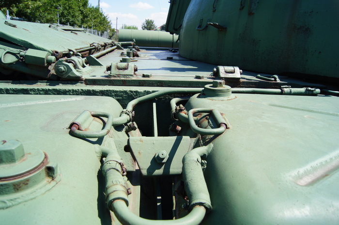Один из танков использовался ранее как учебный.Через вырезы в броне можно увидеть интерьер.
