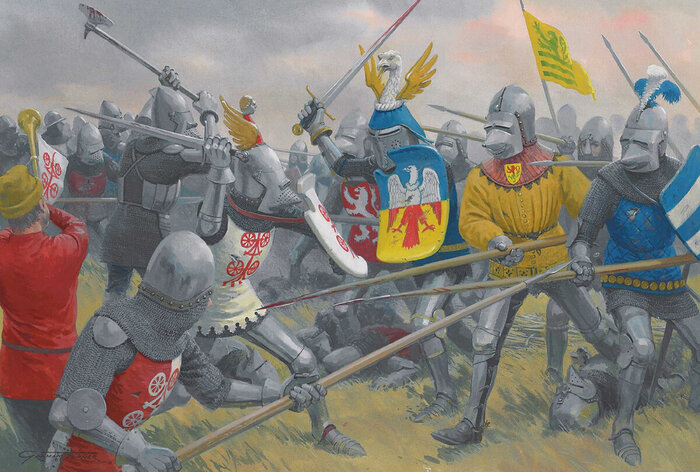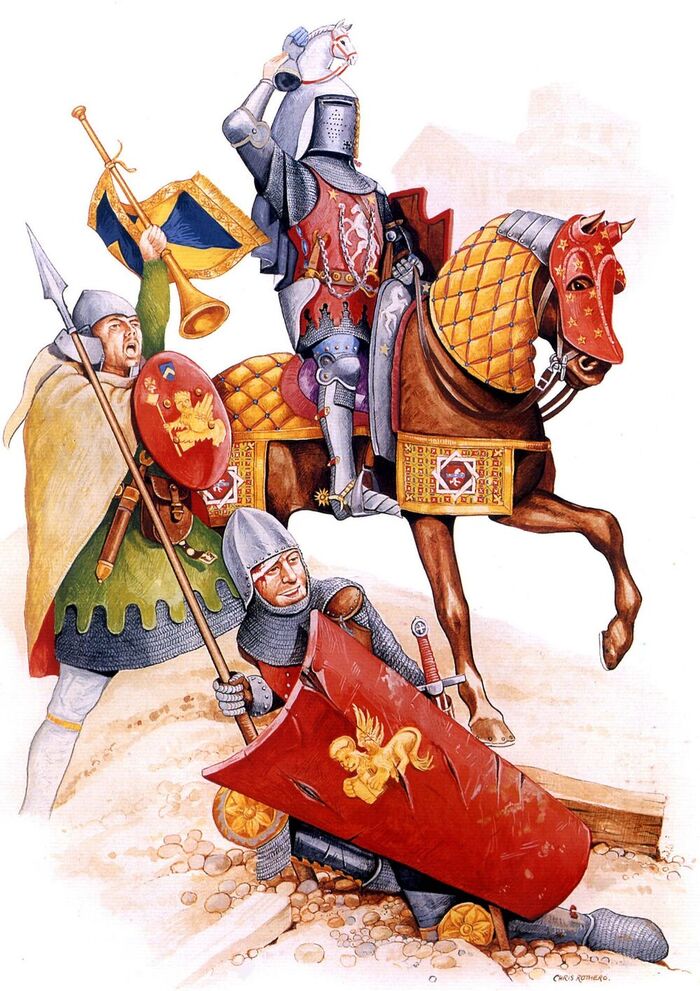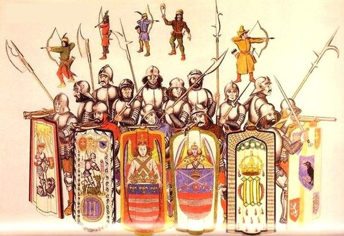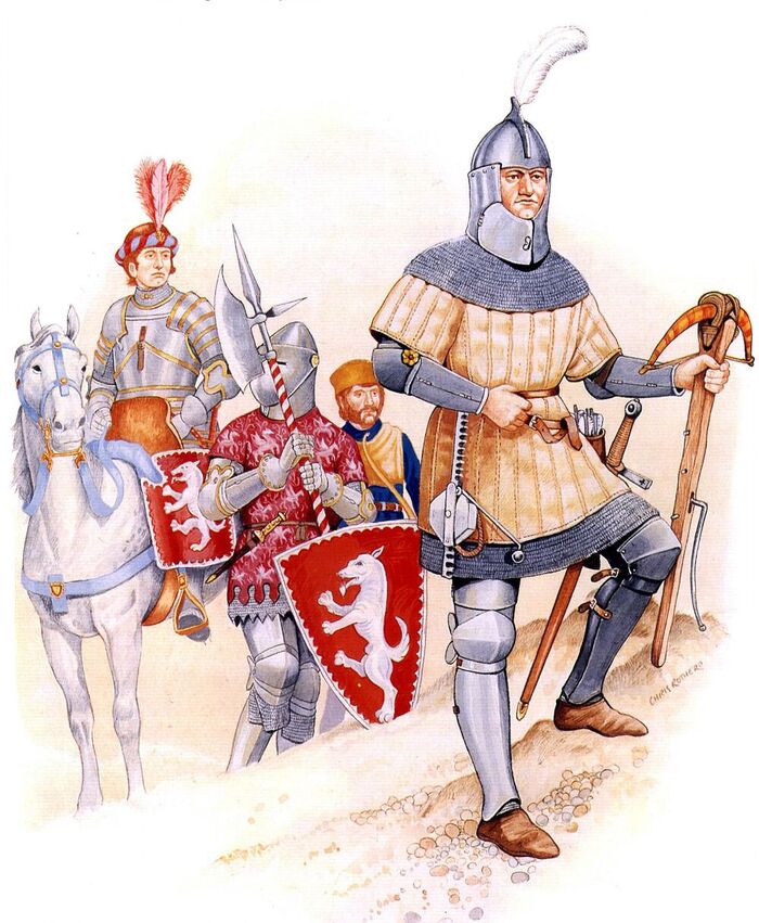 В основе войска стояли профессионалы-рыцари, часто из соседних стран, но две трети личного состава набиралось из местных крестьян и горожан.