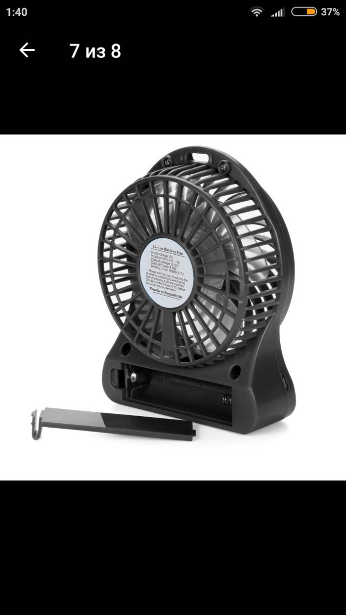Купил в апреле портативный вентилятор на аккумуляторе для своей тети, она крупная женщина и часто ездит в транспорте. Знал, что ей будет душно летом в автобусе. Вчера созвонились, она отметила, что вентилятор здорово ее спасает. У него три скорости, я спросил какой она пользуется. Сказала, что первой скорости достаточно. Также она включала его на ночь на первой скорости, он отработал 10 часов. Размер его чуть больше ладони. Работает бесшумно. На третьей скорости дует очень сильно. Спросил что нибудь ей говорили пассажиры? Говорит, что подсаживаются поближе, чуть ли не прижимаются. Одна бабуля спросила, где покупала, сказала подарили. Себе я брал такой же и еще вентилятор для телефона с micro usb и переходником на айфон. Ниже фото будут. Чтобы найти "вентилятор для андроид" или "вентилятор для Айфона" или "вентилятор мини" или "вентилятор на аккумуляторе".