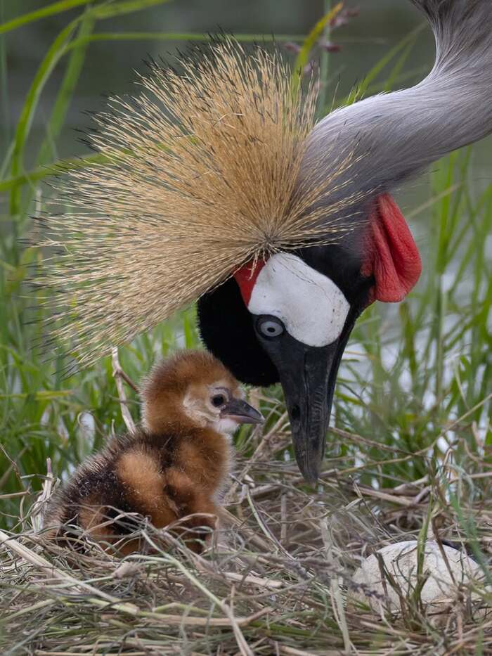 Серый венценосный журавль — птица завораживающей красоты, обитающая на лугах и водно-болотных угодьях Африки