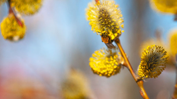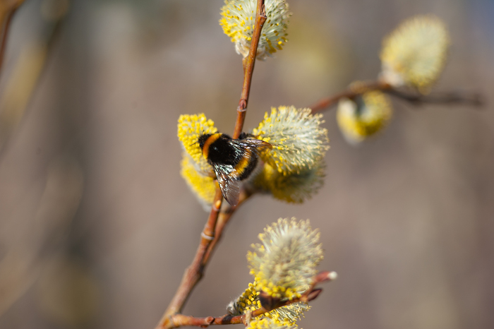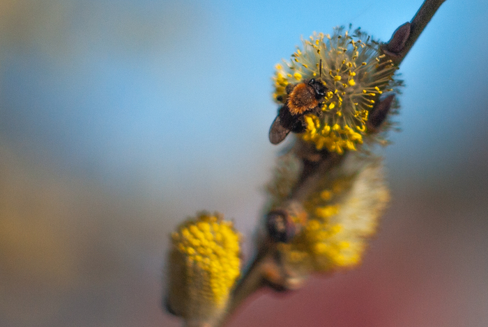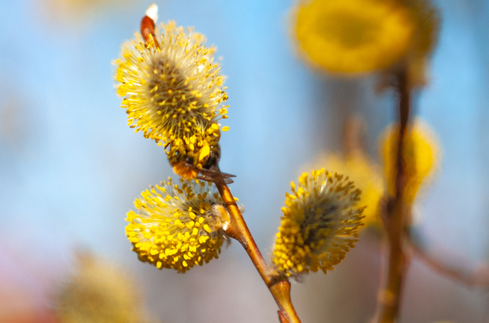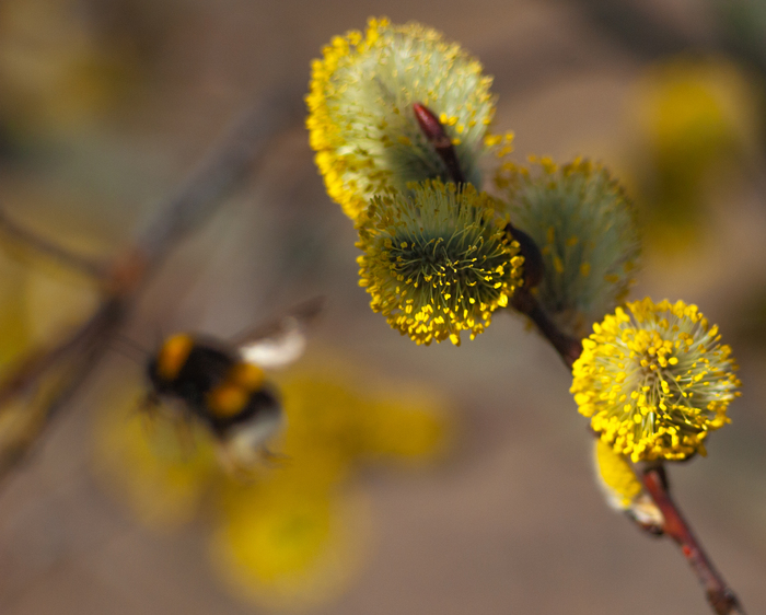 Днем, когда шел на автобус до города заметил цветущую вербу...