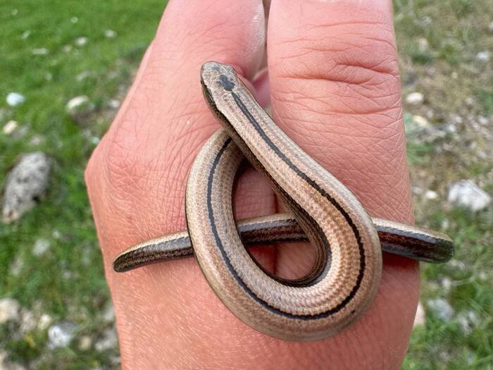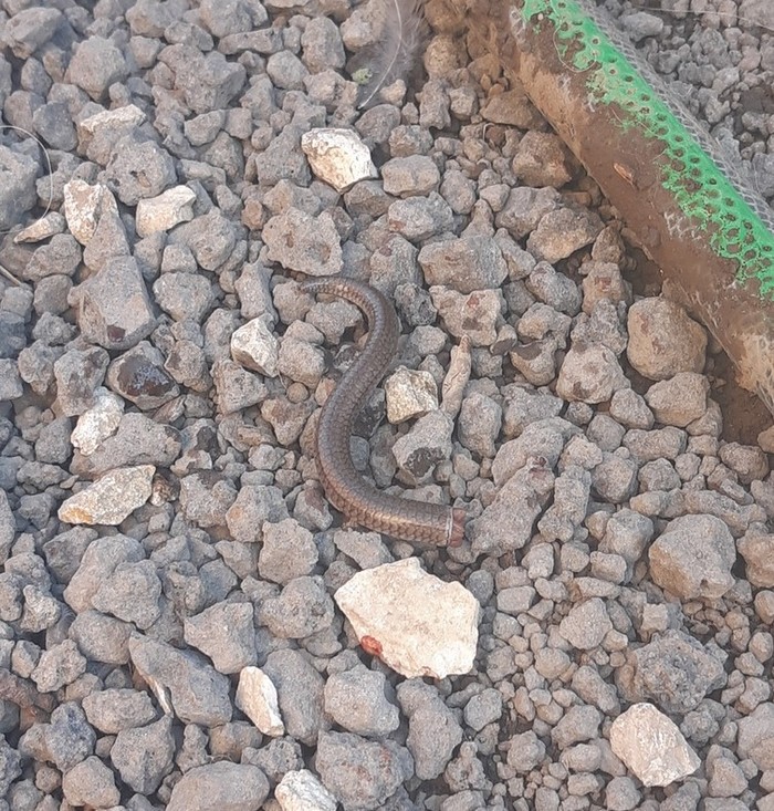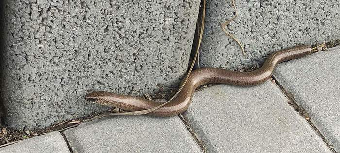 Кто не знал - это безногая ящерица (честное слово, пути естественного отбора неисповедимы). Вот нашёл  фоточки из Башкирии с отброшенным хвостом: видимо при работах "напугали"