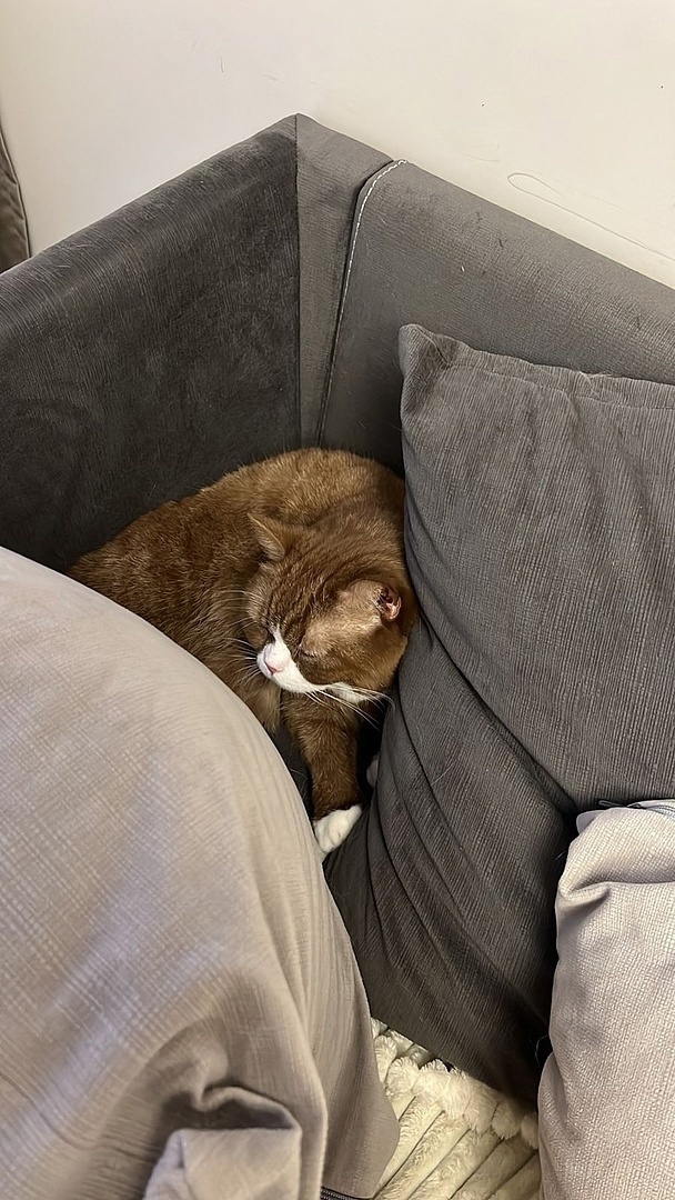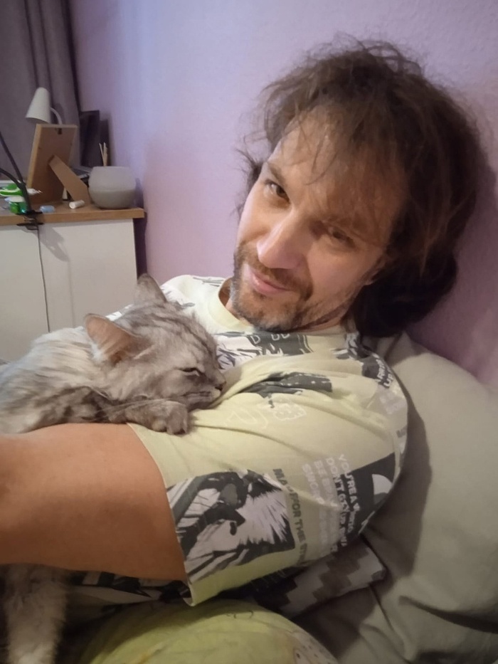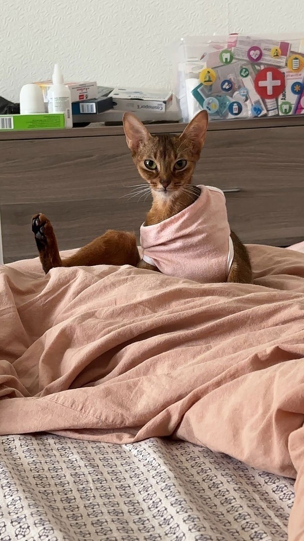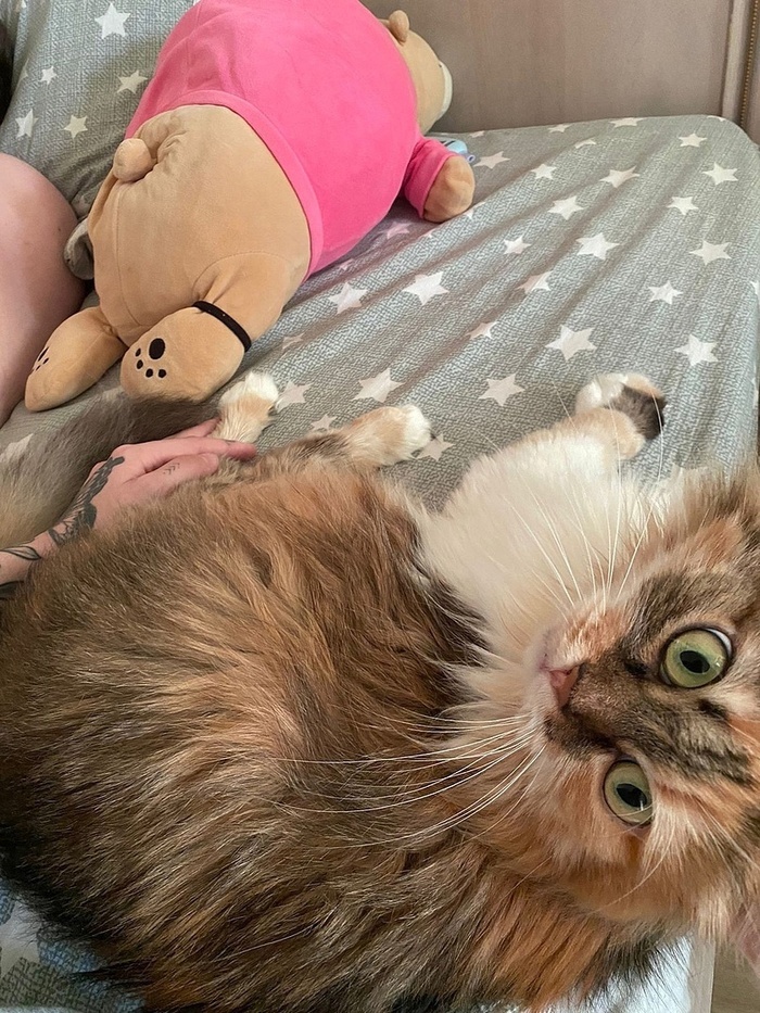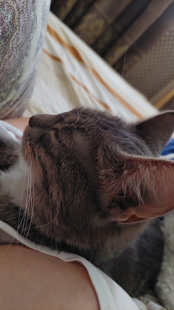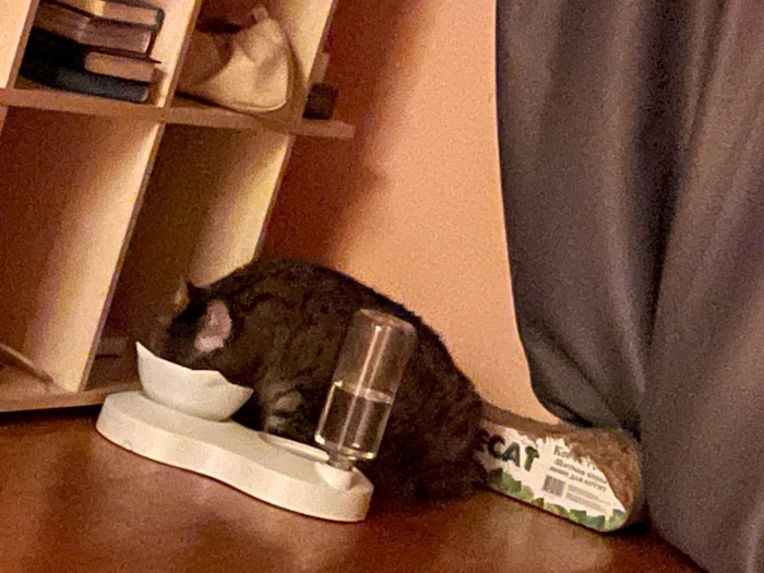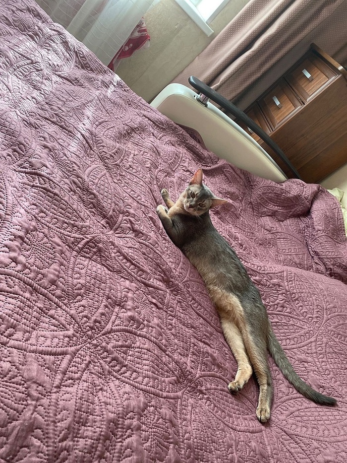"Первый день прятался под кроватью. Периодически выходил обследовать квартиру, если видел, что нас рядом нет. Поел, попил, лоток нашел. Рекомендации маленького помещения очень помогли. Ночь провели вместе. Утром снова сбежал под кровать. Единственная проблема с Филиппом - поймать его, чтобы дать лекарство. Бегали по всей квартире. Я даже не думала, что он такой быстрый и юркий. Но эту проблему мы героически преодолели. С удовольствием позволил себя щеткой почесать. Теперь возлежит на кровати, как будто все время здесь жил".