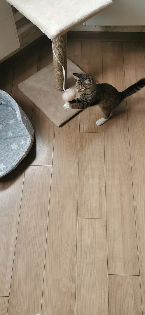 "Добрый день! Все в порядке: не боялась, лоток сразу нашла, играет, на ручки приходит) первый день маловато поела и попила. Вчера уже ела, как надо".