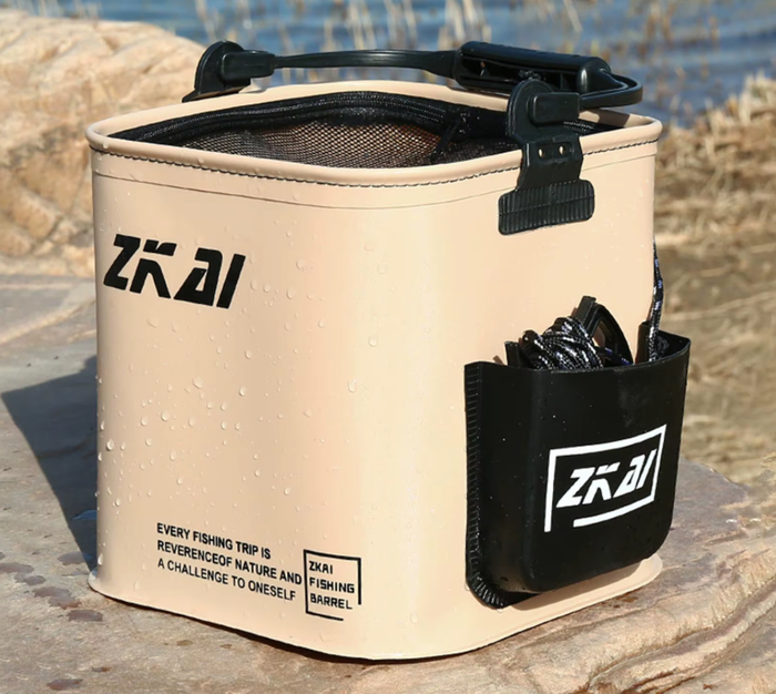 Прочный материал выдерживает воду и нагрузку. Может использоваться как контейнер или ведро для воды. Удобный аксессуар для рыболовов.