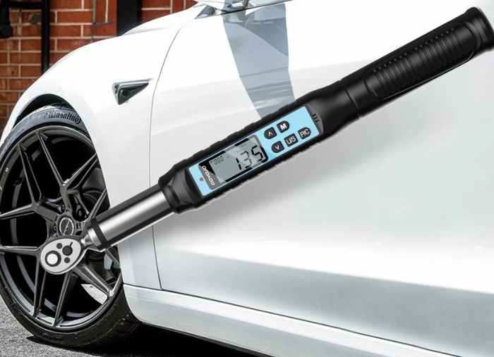 Динамометрический ключ предназначен для точной затяжки крепежа с контролем усилия. Цифровой дисплей отображает значение момента в реальном времени.