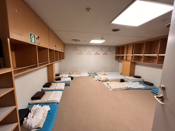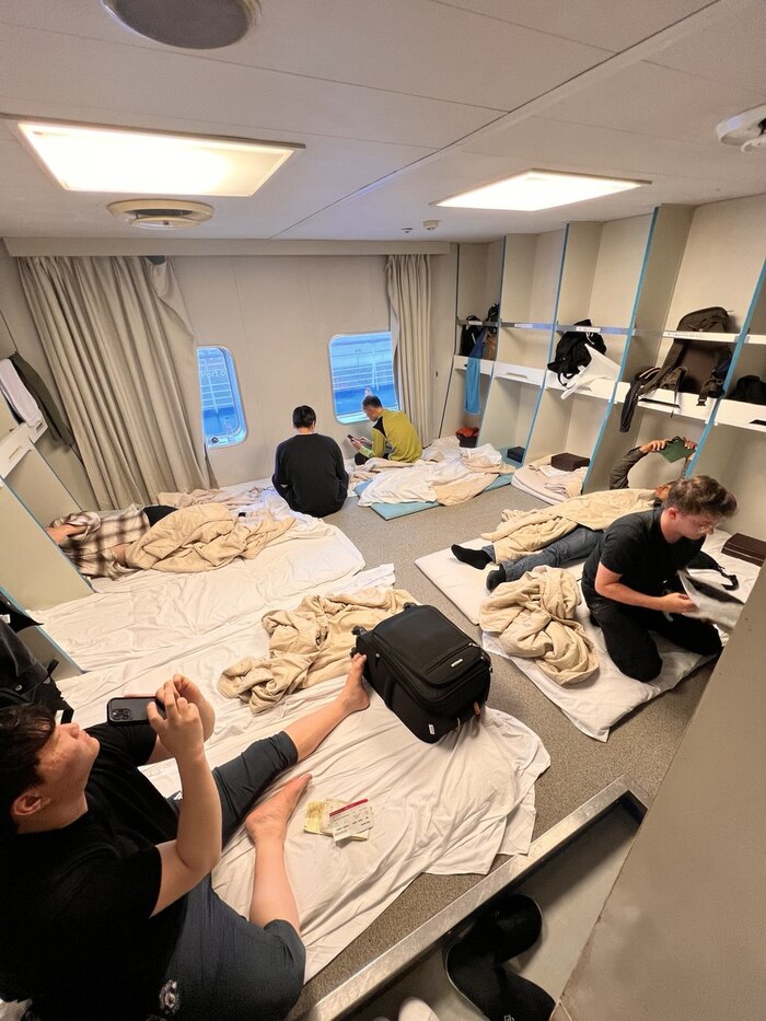 Место в каюте можно занять любое. У каждого пассажира есть тоненький футон (матрас), одеяло и простынка.