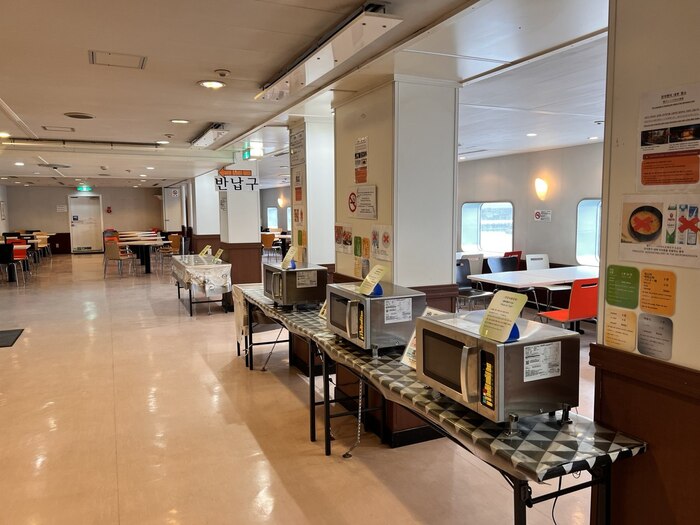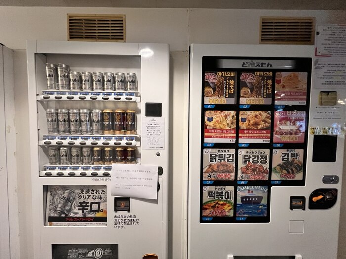 В столовой можно заказать ужин и завтрак. Каждый прием пищи стоит 1000¥ (600₽, $7). Я не брал. Также есть автоматы по продаже лапши, пива и других софтдринксов. Можно налить кипятка или разогреть в микроволновке.