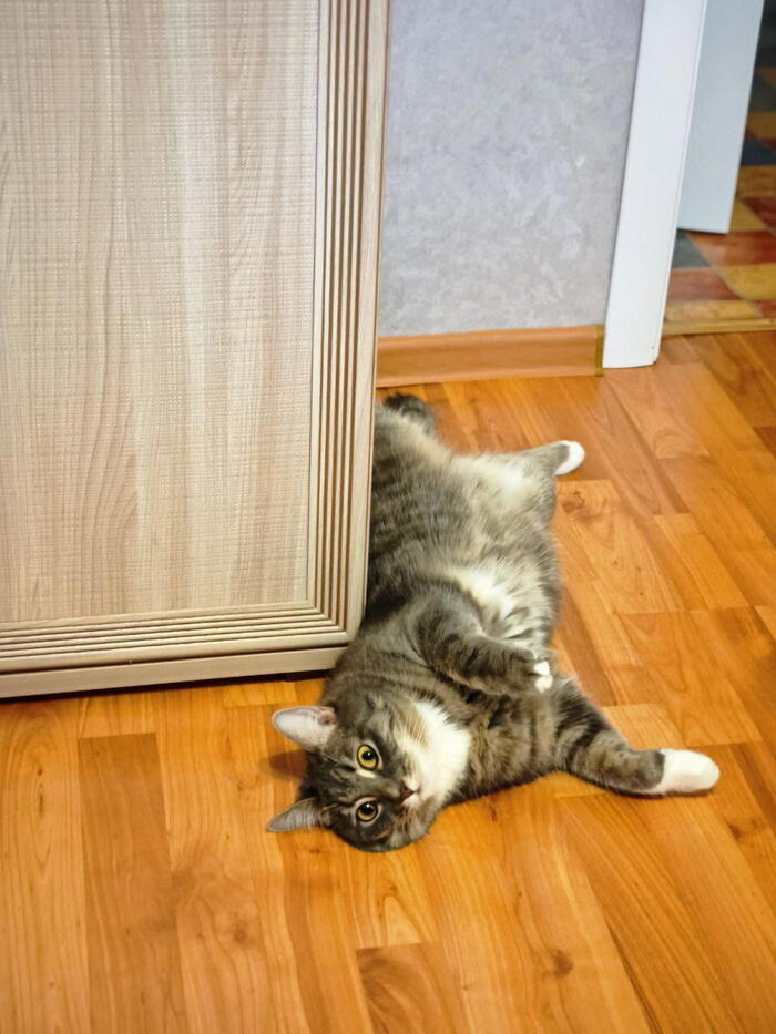 Но и поиграть кот всегда готов. А ещё он очень мягкий. И шёрстка шелковистая.