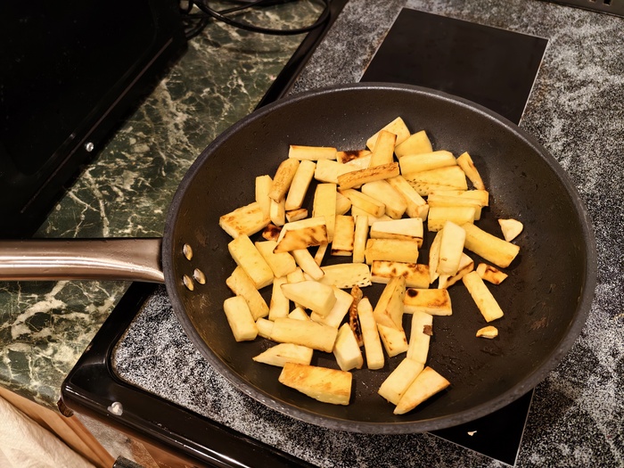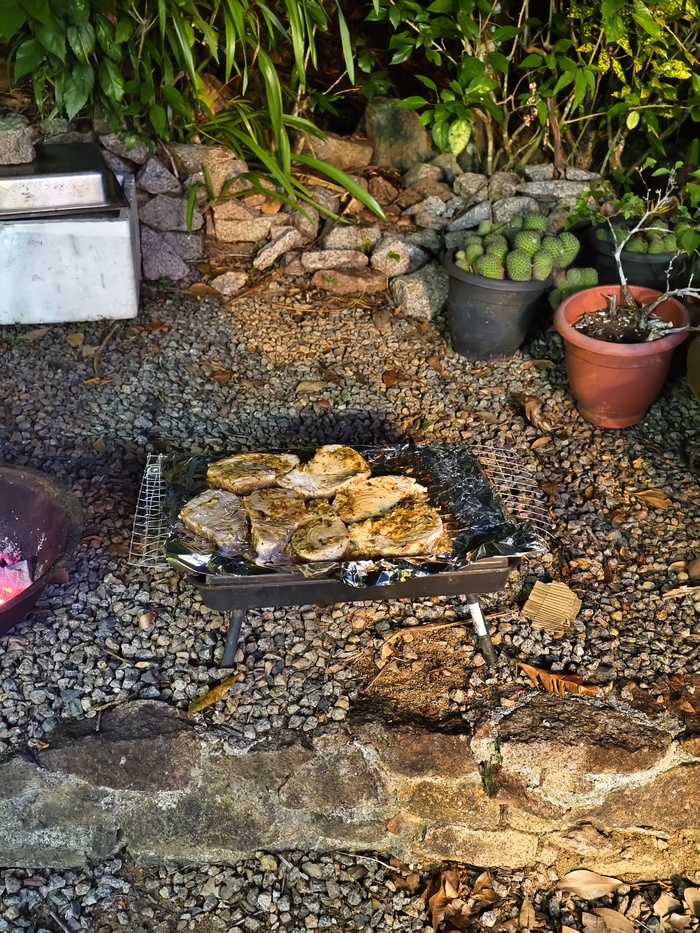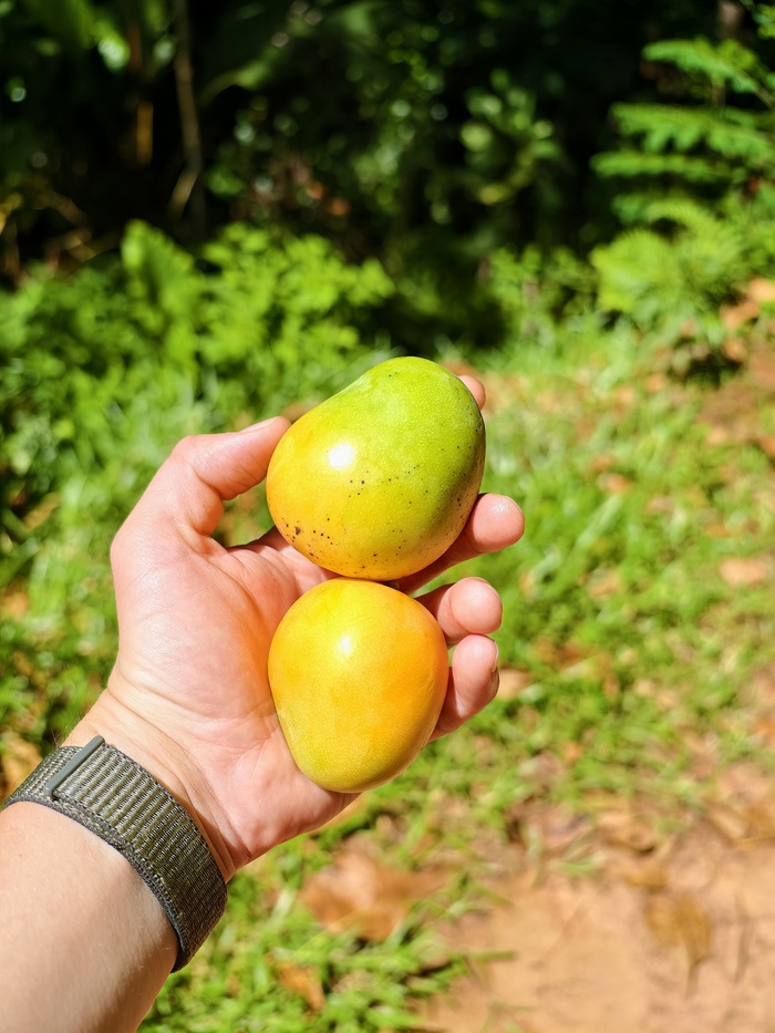 Кстати, собирали и плоды хлебного дерева. Больше для эксперимента, а не с голодухи. )))) Жарили, варили. Отдаленно напоминает картошку. Варёный со сливочным маслом и копчёным тунцом - ну почти как скумбрия с картохой, жареный под яйцом - как картоха с яичницей.