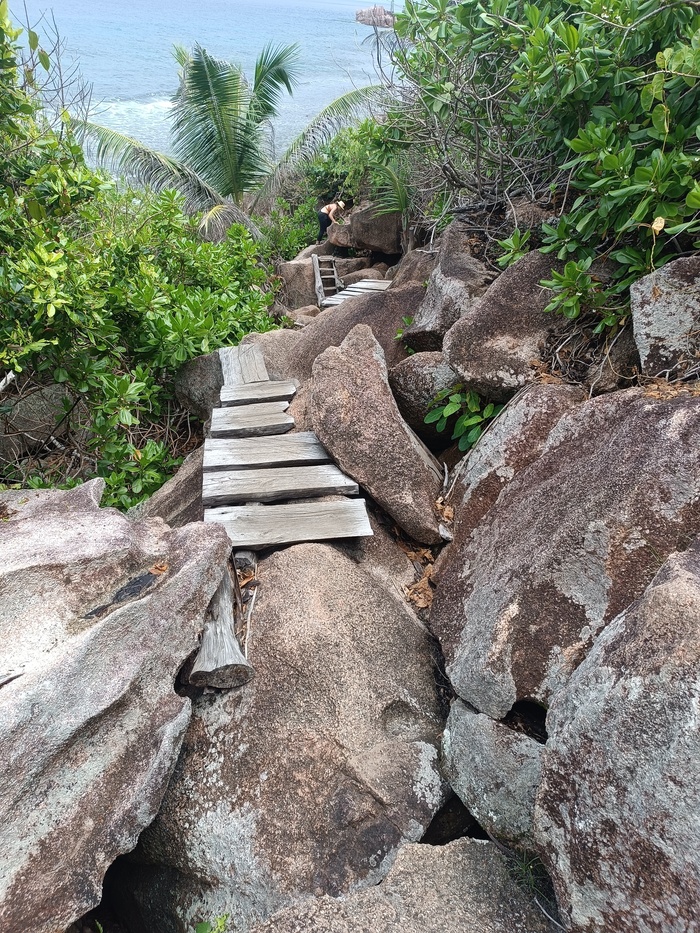 Чем занимались. На мой взгляд Сейшелы - это пляжный отдых. Тусовки как в Тае нет. Но и на месте сидеть, при желании, тоже не стоит. Мы ездили по разным пляжам, сегодня на один, завтра на другой. Это на Маэ, на автобусе и пешком. На Ладиге мы побывали на всех пляжах, кроме Анс Маррона. Проход туда довольно сложен, среди камней. Местные проводники берут 300 рупий за проводку. Но я же "опытный турист", на Петит, Кокос, Кайман сами дошли, жаба задавила, и мы пошли сами со стороны Гранд Анса. Заплутали в валунах, подустали. Вроде бы дорожки натоптаны, но, оказалось, натоптаны такими же плутающими в валунах как и мы. ))))