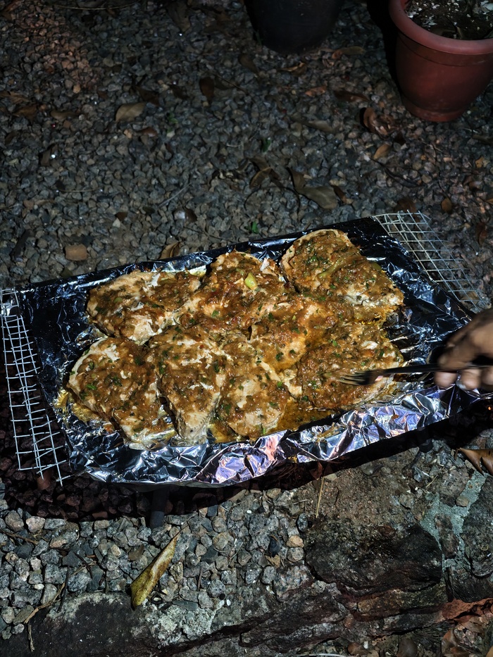 Что мы готовили. Утром банально яичницу (от 4 до 5 рупий за яйцо). С тостами, авокадо. Можно купить кашу, хлопья, в магазинах +/- всё есть. Ужин - куриный бульон, макароны или рис с курицей, креветками, сардельками, рыбой. Бразильские сардельки - зачёт! Цены на продукты в магазинах повыше чем у нас, но не на много. Авокадо и манго просто собирали по дороге. Да, есть местные личности пытающиеся продать манго, но зачем покупать, если оно чуть дальше за углом просто лежит в траве? Разве что мажористым гейропейцам втюхать. )))))