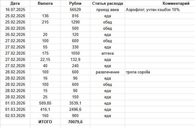 Я бы пропустил пост мимо, но зацепило то, что мы покупали билеты тоже в июле 2025 на февраль 2026, и тоже по акции, и тоже в Аэрофлоте. На двоих туда - обратно обошлось 112 т.р. (еще и минус кэшбек около 6000). Без багажа, ручная кладь - 2 чемоданчика до 10 кг и 2 рюкзачка до 5 кг. (внимательно читайте нормы ручной клади на сайте Аэрофлота!) Для двоих это за глаза. Все зимние вещи поместились в один чемодан, все летние во второй. Мелочевка по рюкзачкам. Подарки нам везти было не кому. )))))))