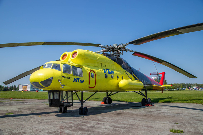 Первый вертолет Ми-10 поднялся в воздух 15 июня 1960 года. Машина была разработана в короткие сроки благодаря использованию двигательной установки и систем управления вертолета Ми-6. Основное назначение машина - работа в качестве "летающего крана", перевозящего габаритные грузы на внешней подвеске. Всего было построено 55 вертолетов Ми-10 различных модификаций и 17 вертолетов Ми-10К (на фото в музее).
