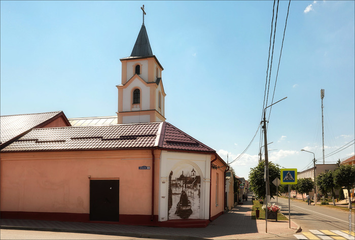 На центральной улице города рядом расположены католический и православный храмы. Но рядом они не только географически) Они практически ровесники: католический 1809-го года постройки, а православный "родился" в 1819-м.