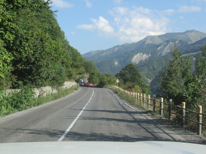 Арка дружбы самая, наверное, известная точка. На самом деле если пытаться посмотреть все, то путь от Верхнего Ларса до Тбилиси можно растянуть дня на четыре. А сама дорого это серпантин, пропитанный запахом сгоревших тормозных колодок. Спешно включил ручной режим коробки и учиться им пользоваться так как не всегда понятно твои или нет это горят колодки (нет оказались не мои) Самая верхняя точка 2400 Периодически на нем встают фуры, которым не въехать или не съехать. Правда в этих случаях быстро появляется полиция и организовывает реверс. Ехать страшно. Красиво. По сторонам смотреть и хочется и не хочется одновременно. Пассажиру страшнее. Водитель смотрит на дорогу, а вот пассажир вниз. Очень хотелось попасть на ровную дорогу до темноты.