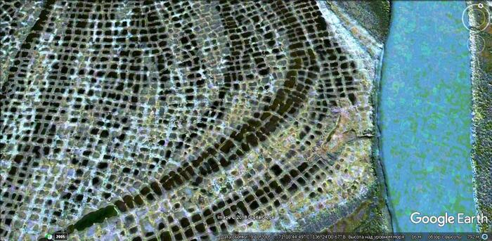 Ответ найдем в Нижнеянске,500 км севернее. Там еще сохранились заливные участки, на которых предыдущая цивилизация выращивала злаковые. Возраст полигональных болот, в которые со временем превращаются заливные участки составляет от 500 до 5000 лет